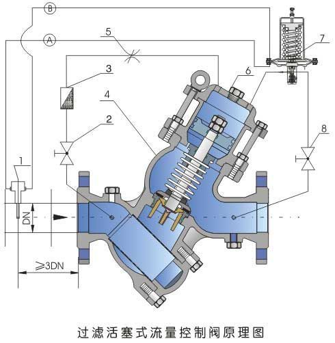 三、YQ98002型過濾活塞式安全泄壓閥--特點(diǎn): 1.畢托管向極敏感的限流導(dǎo)閥傳遞壓信號(hào), 無孔板孔口節(jié)流, 無壓力損失, 節(jié)能. 2.限流導(dǎo)閥中有極靈敏的彈簧對(duì)流量進(jìn)行調(diào)節(jié), 操作簡(jiǎn)單而且準(zhǔn)確. 3.Y形寬體閥腔,流阻小.抗汽蝕性強(qiáng). 日介質(zhì)自身壓力自控, 無需外供驅(qū)動(dòng)源. 5.主閥體的進(jìn)口法蘭與閥座之間設(shè)了過濾器, 節(jié)省投資成本和安裝費(fèi)用. 6.內(nèi)外表面均噴澮環(huán)保涂層.確保產(chǎn)品的防府蝕及安全。 四、YQ98002型過濾活塞式安全泄壓閥--技術(shù)參數(shù):