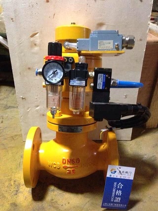 1.適用于燃氣或液氨管道上,起安全防護作用。日常閥門處在常閉狀態(tài)。裝泄過程工作時,氣源壓力推動氣缸活塞,閥門開啟。