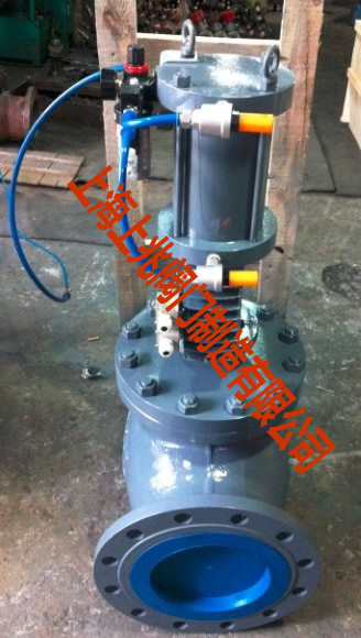 1.該氣動抽氣止回閥采用獨立的逆止閥和輔助氣動關(guān)閉裝置相結(jié)合的結(jié)構(gòu)型式(氣源用戶自備),當汽輪機開始工作時,控制系統(tǒng)裝置中的氣源通過電磁換向閥進入助關(guān)氣缸的下腔,推動助關(guān)氣缸活塞向上移動,壓縮彈簧并使彈簧蓄能,閥板在管路介質(zhì)的推動下開啟。當系統(tǒng)故障時,管路介質(zhì)壓力降底,閥板在自身重力的作用下關(guān)閉,此時控制系統(tǒng)供氣電磁換向閥接受信號氣源換向,使氣體進入助關(guān)氣缸的上腔,與彈簧一起推動氣缸活塞向下移動,幫助閥板以最快的速度關(guān)閉,閥門在閥板關(guān)閉后從輔助動力裝置獲得一定鎖閉閥板力,以防管路系統(tǒng)蒸汽和冷嶷水倒流,保護汽輪機等主要設(shè)備。 2.閥門執(zhí)行機構(gòu)采用氣開式,一旦電磁換向閥接受信號氣源換向,執(zhí)行機構(gòu)彈簧和電磁換向閥氣源能使閥門迅速關(guān)閉,關(guān)閉時間0.5~1秒。