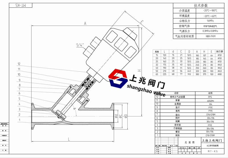 產(chǎn)品介紹 快裝氣動(dòng)角座閥(塑料頭)--工作原理: 在非工作狀態(tài)時(shí),由于彈簧力作用,閥門常閉(開)。當(dāng)執(zhí)行器活塞被壓縮氣體作用時(shí),閥門打開(關(guān)閉)。雙作用形式靠壓縮氣體控制閥門開關(guān)。 快裝氣動(dòng)角座閥(塑料頭)--應(yīng)用范圍: 啤酒飲料灌裝設(shè)備 制藥及醫(yī)療設(shè)備 印染紡織 化工行業(yè) 氣體工業(yè) 高溫滅菌 發(fā)泡機(jī)械 水/污水處理 快裝氣動(dòng)角座閥(塑料頭)--特點(diǎn): 流量大,流阻小,無水錘 Y型設(shè)計(jì),增加30%流量 超長使用壽命 閥桿自動(dòng)校正,自潤滑,免維護(hù) 氣缸采用不銹鋼材質(zhì),在惡劣環(huán)境中更加優(yōu)秀,可360°旋轉(zhuǎn)。 快裝氣動(dòng)角座閥(塑料頭)--技術(shù)參數(shù): 管道壓力:Max1.6Mpa(232psi) 控制壓力:0.3-0.8Mpa(43.5-116psi) 控制介質(zhì):中性氣體或空氣 閥體材料:CF8M/CF8(SS316,SS304) 密封材料:聚四氟乙烯 氣缸材料:塑料PPS 氣缸尺寸:27mm,32mm,40mm,50mm,63mm, 80mm,100mm,125mm 適用介質(zhì):水,酒精,油,染料,蒸汽,中性氣體或液體,有機(jī)溶劑,酸堿溶液 介質(zhì)溫度:-10℃-+180℃,25℃-+220℃ 環(huán)境溫度:-10℃-+80℃ 控制形式:單作用常閉,常開,雙作用常閉,雙作用自由態(tài) 連接形式:螺紋式,焊接式,法蘭式,快裝式 快裝氣動(dòng)角座閥(塑料頭)圖紙: ![]() 上兆閥門其他產(chǎn)品: 閘 閥 截止閥 球 閥 蝶 閥 緊急切斷閥 電磁閥 水力控制閥 止回閥 刀型閘閥 旋塞閥 過濾器 減壓閥 疏水閥 隔膜閥 調(diào)節(jié)閥 阻火器 呼吸閥 燃?xì)忾y門 冶金閥門 | ||
