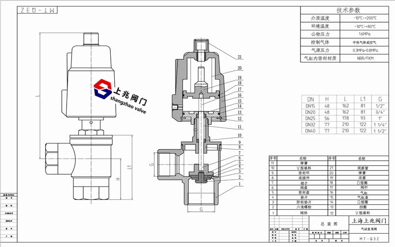 產(chǎn)品介紹 螺紋氣動直角閥--工作原理: 可調(diào)節(jié)活塞開度,限制行程,調(diào)節(jié)閥門流量,適用于所有型號的角座閥,另外在無控制氣源、機械(電磁)故障時還可以用來緊急制動。 閥體材料:不銹鋼SS316/SS304/黃銅 執(zhí)行器材料: SS304不銹鋼 閥盤密封:PTFE/FPM 閥桿密封:PTFE/FPM 活塞密封:FPM/NBR 螺紋氣動直角閥--技術參數(shù): 接口尺寸:DN10-DN65 螺紋:3/8‘’--21/2‘’ 適用介質(zhì):水,中性氣體和液體,酒精,油,有機溶劑,水蒸氣,弱酸弱堿溶液。 介質(zhì)溫度:PTFE:-10℃-+200℃ FPM:-10℃-+100℃ 順流安裝/逆流安裝 控制介質(zhì):空氣/中性氣體 控制壓力范圍 :0.3-0.8MPa 工作壓力:0-1.6MPa 螺紋氣動直角閥--應用范圍: 啤酒飲料灌裝設備 制藥及醫(yī)療設備 印染紡織 化工行業(yè) 氣體工業(yè) 高溫滅菌 發(fā)泡機械 水/污水處理 螺紋氣動直角閥圖紙: ![]() | ||