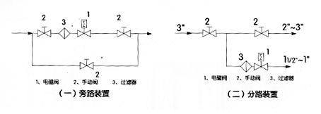 1、安裝時電磁閥線圈向上,并保持垂直位置,電磁閥上箭頭或標(biāo)記應(yīng)與管道流向一致,不得安裝在有濺水或漏水的地方。 2、電磁閥的工作介質(zhì)應(yīng)清潔無顆粒雜質(zhì),電磁閥內(nèi)件表面上的污物及過濾器,需定期清潔干凈。 3、在電磁閥發(fā)生故障時,為了及時隔離電磁閥,并保證系統(tǒng)正常運行,最好安裝旁路裝置(如圖一)。 4、在管路系統(tǒng)中,安裝在支路上的電磁閥通徑應(yīng)小于主管道閥門的通徑(如圖二)。 5、安裝電磁閥前,管道必須清洗干凈。建議在電磁閥前安裝過濾器,蒸汽管道安裝疏水閥。 6、不能將電磁閥安裝在管道的低凹處,以免因蒸汽冷凝水、雜質(zhì)等沉淀在閥內(nèi)而防礙動作。 7、普通型電磁閥不能在爆炸危險場合使用。 8、在管路剛性不足情況下,建議把電磁閥前管道用支架固定,以免電磁閥工作時引起振動。 9、在安裝電磁閥前,要注意看清產(chǎn)品電磁閥標(biāo)牌,認(rèn)真閱讀使用說明書電磁閥,判斷電磁閥產(chǎn)品是否符合使用條件。 10、電磁閥前后管道上需安裝壓力表,以便觀察管道壓力。
