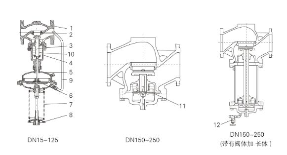 閥體閥座閥軸閥蓋膜蓋膜片彈簧調(diào)節(jié)螺母導(dǎo)壓管波紋管平衡膜片充注閥