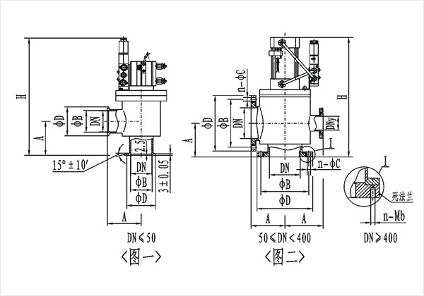 注:其中DN400以上底部采用死法蘭n-Mb。
